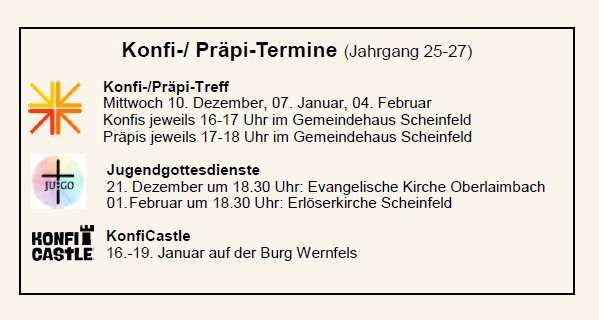Konfirmanden undPräparanden- Termine (Jahrgang 2025- 2027)